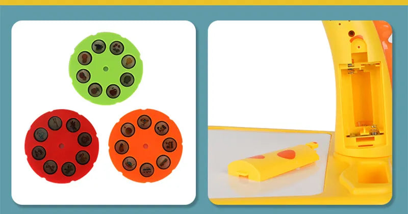 • ใ€Ensemble de projecteur de dessinใ€‘ La machine ร  dessiner * 1, le livre de dessin blanc * 1, le stylo ร  dessin * 12, le disque * 3 et le tableau effaรงable * 1, papier A5 blanc * 20, colle transparente * 1. Ce jouet est un excellent cadeau pour les enfants.