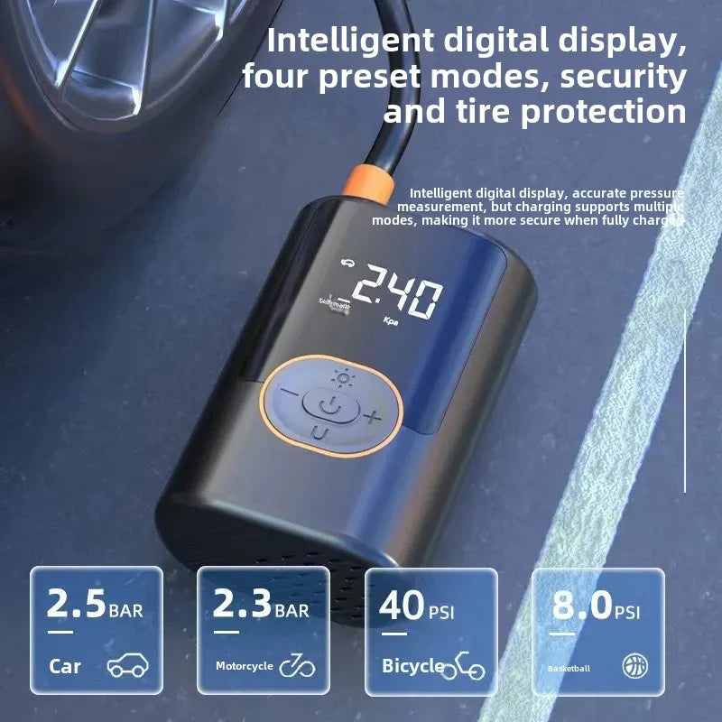 La pompe à air pour pneus de voiture avec manomètre peut vérifier exactement la pression de vos pneus en temps réel . Vous pouvez le voir sur son écran LCD. Manomètre intégré et fonction de préréglage de pression, ce compresseur d'air pompera la quantité précise d'air et arrêtera automatiquement le gonflage lorsque la pression des pneus atteint la valeur prédéfinie, vous offrant une expérience utilisateur sûre, rapide et fiable.